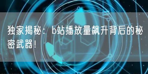 近年来,B站逐渐成为了国内最具影响力的视频分享平台之一。不少视频在B站上一经发布,便迅速获得大量播放和关注。那么,究竟是什么原因让B站视频播放量飙升呢?本文将为您揭秘背后的秘密武器。