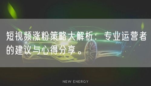 随着互联网的普及和技术的飞速发展,短视频已成为大众获取信息、娱乐消遣的重要途径。对于个人或企业而言,如何在短视频平台上吸引更多粉丝,成为了一个重要的课题。本文将围绕短视频涨粉策略,分享专业运营者的建议与心得。