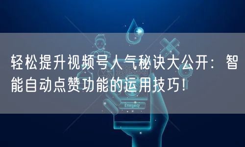 通过以上介绍和运用技巧,相信大家对智能自动点赞功能有了更深入的了解。掌握这些技巧,轻松提升视频号人气不再是难题。让我们一起努力,创作出更多优质内容,吸引更多观众关注和互动!
