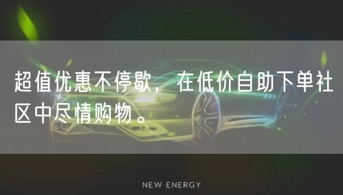 总的来说,这个低价自助下单社区让你享受到前所未有的购物体验。超值优惠不停歇,让你尽情享受购物的乐趣。快来加入这个社区吧,让我们一起享受购物的快乐!