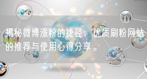 本文为你揭示了微博涨粉的捷径,推荐了优质刷粉网站,并分享了使用心得。同时,强调了社交媒体营销的重要性。希望对你有所帮助,让你在微博上获得更多的关注和认可。