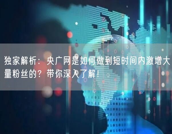 央广网作为一个知名的媒体平台,近期实现了短时间内粉丝数量的激增。本文将带你深入了解这一成就背后的原因,探究其社交媒体策略和运营策略。