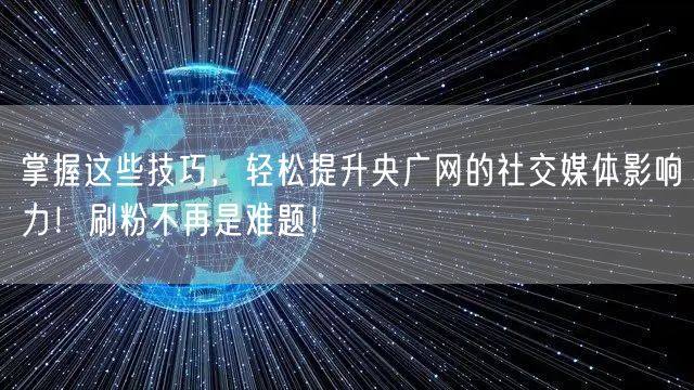 在数字化时代,社交媒体已成为信息传播的重要渠道。央广网作为中国重要的新闻网站之一,提升社交媒体影响力至关重要。本文将为你揭示轻松提升央广网社交媒体影响力的秘诀,助你摆脱刷粉的困扰。