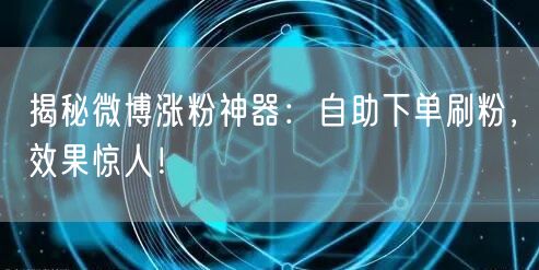 总之,微博涨粉神器为那些希望在微博上迅速增加粉丝数量的用户提供了一种新的选择。通过自助下单刷粉,可以实现惊人的涨粉效果,提升个人或品牌影响力。但也需要用户合理使用,注重内容质量和遵守平台规则。希望本文能为大家在微博上营销自己或品牌提供一些有益的参考。